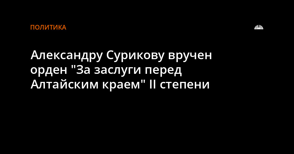 Награды Александр Суриков удостоен за высокие достижения в государственной деятельности, большой личный вклад в социально-экономическое развитие Алтайского края.
