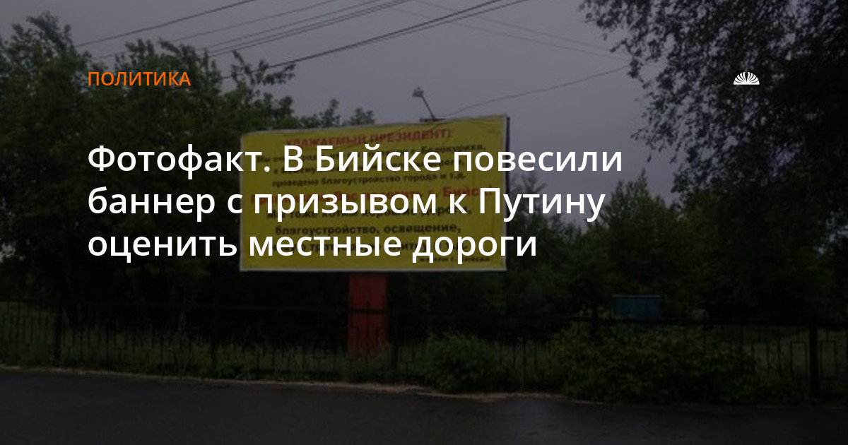 Как пояснил altapress.ru сам Евгений Корчагин, к "путинскому" баннеру он не имеет никакого отношения, просто сфотографировал плакат (снимок набрал в соцсети более 2 тысяч "классов" от пользователей). По словам единоросса, плакат провисел несколько часов. Теперь же Евгений Корчагин говорит, что "мы будем требовать от мэрии, чтобы нам вернули оба баннера". Как пояснил председатель садоводства "Монтажник", он имеет в виду свой плакат, повешенный в мае на здании администрации, а также этот баннер с призывом к Путину. И пусть это не его плакат, говорит г-н Корчагин, но он же висел около садоводства.
