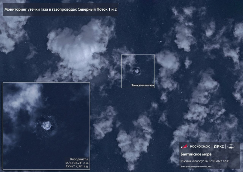 Также Роскосмос показал снимки утечки газа из «Северных потоков».
