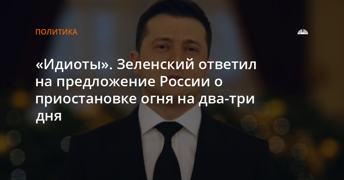 «Я считаю, что идиоты, потому что прекращение огня нужно, чтобы не было убитых», — прокомментировал предложение Зеленский.
