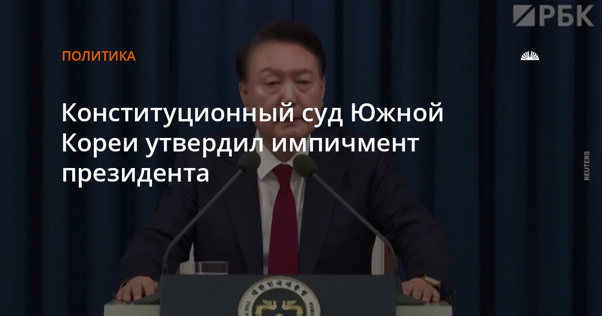 Конституционный суд Республики Корея принял решение об импичменте президента Юн Сок Ёля, окончательно отстранив его от власти. Как сообщает корреспондент ТАСС из здания суда, за данное решение проголосовали все восемь судей, что значительно превысило необходимое минимальное число в шесть голосов.