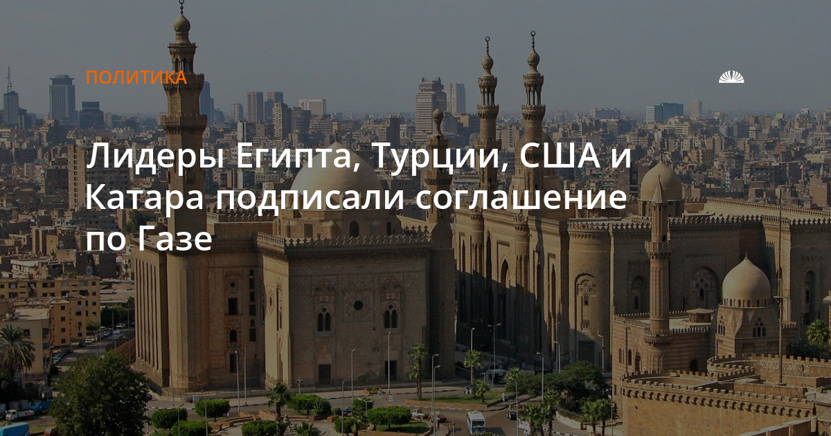 Лидер Египта Абдель Фаттах ас-Сиси, эмир Катара шейх Тамим бен Хамад Аль Тани, президент США Дональд Трамп и глава Турции Реджеп Тайип Эрдоган подписали декларацию о прекращении огня в Газе. Теперь их страны будут нести обязательства мирных договоренностей.