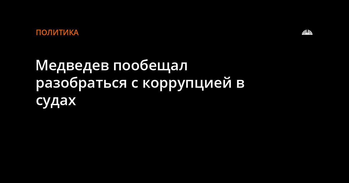 "Надо сделать все, чтобы суд был максимально независимым от властей и в то же время абсолютно зависим от общества", - подчеркнул президент. "Судьи это не замкнутая корпорация", - добавил он. "Мы что не знаем, что судьи взятки берут?, - заявил Медведев. - Берут. Но кого проще поймать за руку - милиционера или судью? Конечно, милиционера, следователя, прокурора, государственного гражданского служащего. Судью пойдите поймайте".