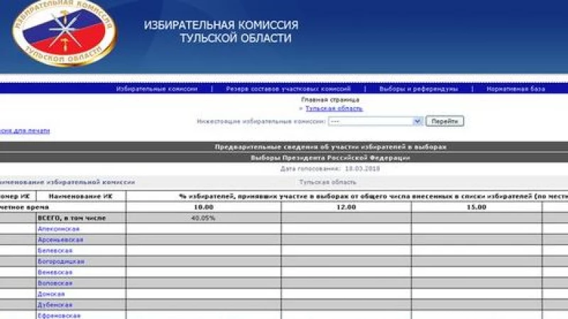 Надо сказать, что несмотря на публикацию информация о такой явке на выборы в области на 10 утра с сайта тульского избиркома так и не исчезла в течение дня 24 февраля. В чем убедился и altapress.ru.