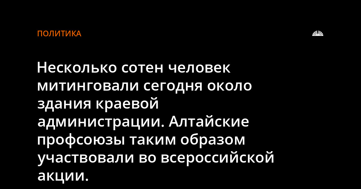 Участники акции выдвинули несколько требований к разным уровням власти: отозвать пакет законопроектов, повысить зарплату бюджетникам только в этом году минимум на 50%, выплатить долги по зарплате и методлитературе, освободить предприятия и учреждения от долгов по ЖКХ, сформировать краевой заказ, принять закон о повышении районного коэффициента в Алтайском крае и другое.