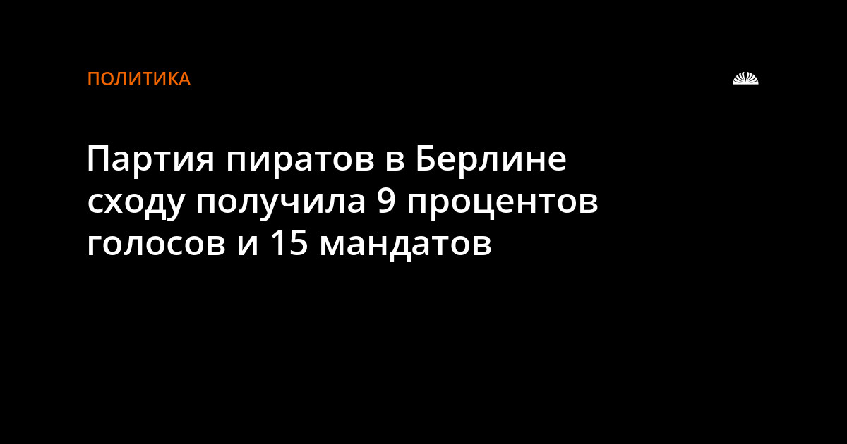 Партию пиратов создана в Берлине в 2006 году, имеет по всей стране около 12 тысяч членов. В Берлине пираты получили с ходу почти 9% голосов и 15 мандатов на выборах в Палату депутатов. Партия