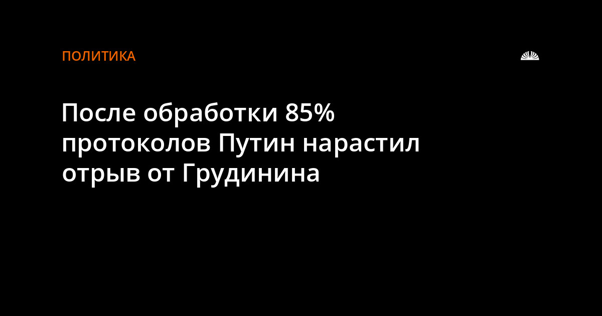 У действующего главы государства 76,29% голосов. На втором месте находится Павел Грудинин, который показывает 12,18%. На третьем месте — Владимир Жириновский. У него 5,92% голосов.