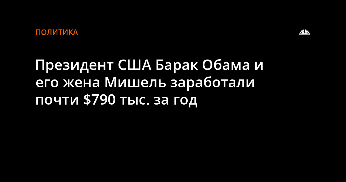 Доход президента США Барака Обамы и его жены Мишель составил 789,6 тыс. долларов в 2011 году, почти на 1 млн долларов меньше, чем в 2010-м, - передает "Би-Би-Си".