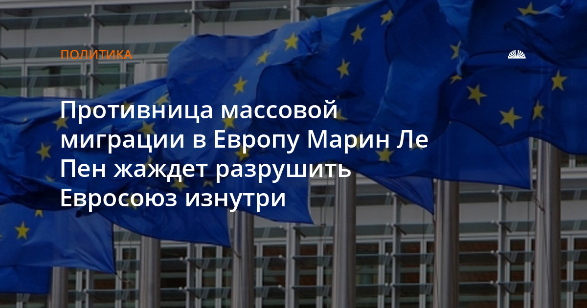 РИА Новости утверждают, что в ходе своего выступления на конференции антимиграционных партий призвала "разрушить изнутри" Евросоюз, который "теряет дыхание": "Евросоюз теряет дыхание. Я надеюсь, что мы свергнем ЕС изнутри. Мы должны вести себя как завоеватели".