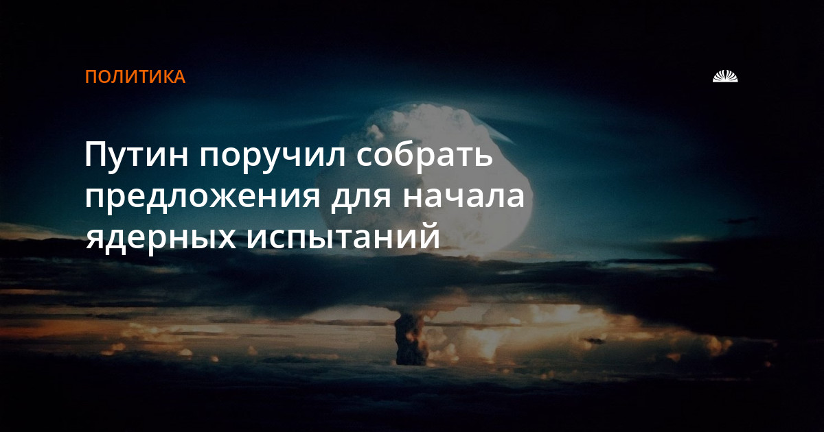 «В этой связи я поручаю министерству иностранных дел, министерству обороны Российской Федерации, специальным службам и гражданским соответствующим ведомствам сделать всё для того, чтобы собрать дополнительную информацию по этому вопросу, провести ее анализ на площадке Совета безопасности и внести согласованные предложения о возможном начале работ по подготовке испытаний ядерного оружия». — заявил Владимир Путин на заседании с членами Совета безопасности России.