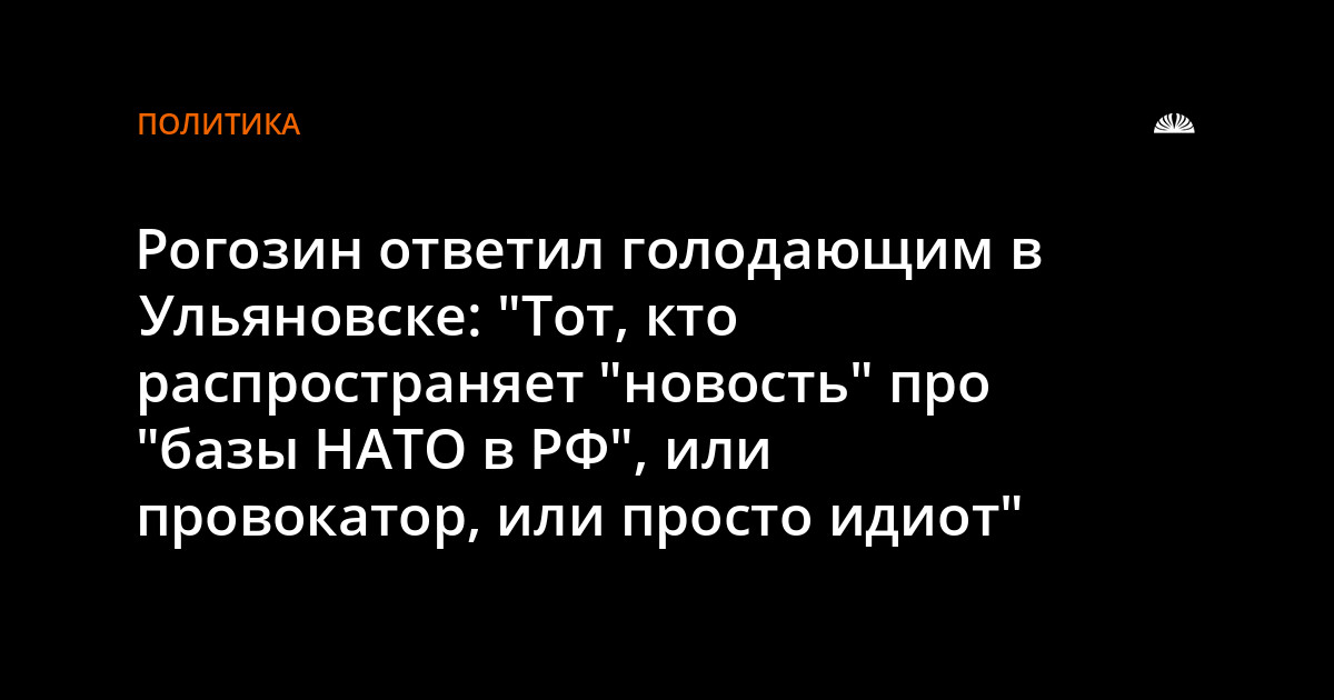 Вице-премьер Рогозин так прокомментировал протестную акцию в Ульяновске: "Может, ульяновские коммунисты голодают в связи с Великим постом? Голодовка - штука серьезная. Это жест предельного отчаяния. Нельзя профанировать протест из-за чьей-то глупой шутки насчет "базы НАТО". Я с товарищами голодал в знак протеста против закона о монетизации. 11 суток на одной воде - это серьезно. А здесь цирк устроили".