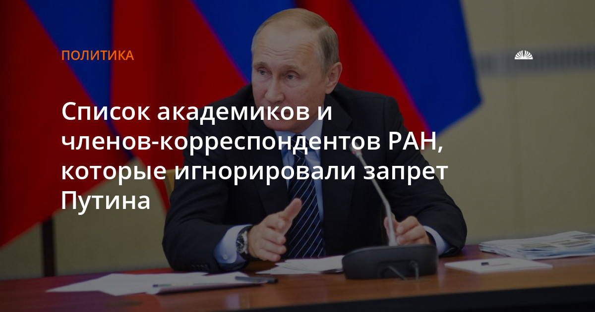 Согласно списку избранных в этом году академиков и членов-корреспондентов, по крайней мере 10 человек нарушили запрет Путина.