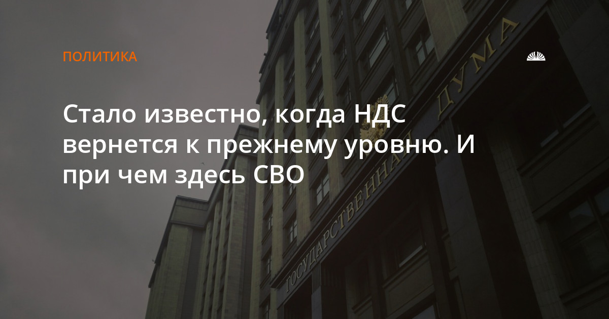 По словам законодателя, «это повышение НДС на время СВО. Думаю, что года через два-три произойдет понижение до прежнего значения — 20%».