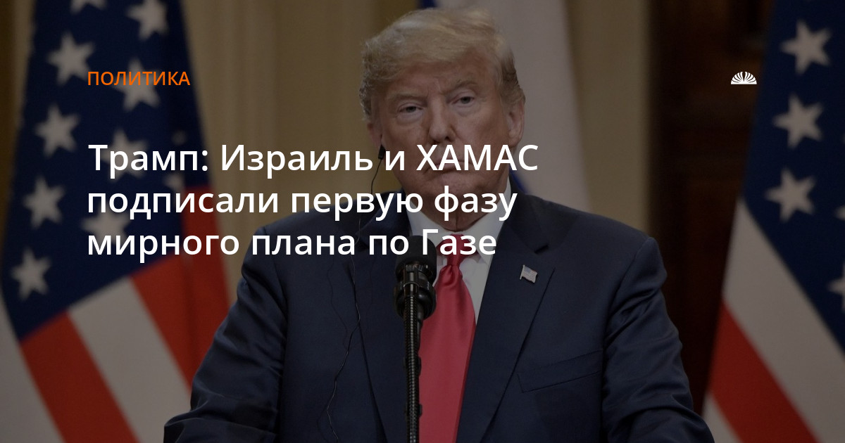 «Я с гордостью сообщаю, что Израиль и ХАМАС подписали первую фазу нашего мирного плана», — РБК передает слова Трампа.