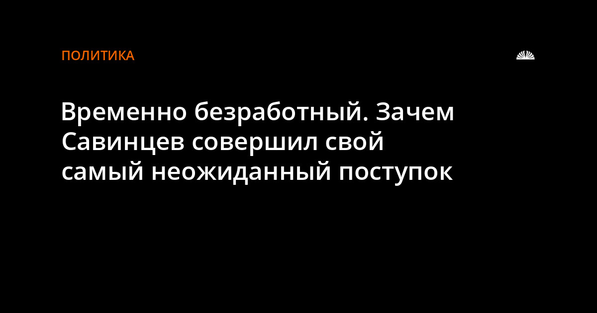 Напророченный политологами и политиками крепкий тандем "Зубович — Савинцев" распался. На время или навсегда? Развитие данной ситуации можно рассмотреть по двум сценариям. Первый — наиболее вероятный, в результате которого г-на Савинцева ждет победа на предстоящем конкурсе на пост главы администрации, и заявление об уходе просто перестраховка. Второй сценарий — интригующий и завязанный, скорее, на номенклатурных взаимоотношениях.
