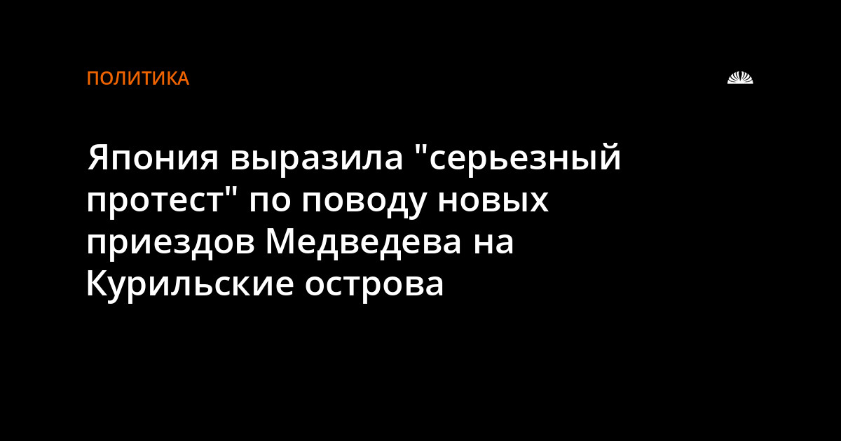 произошедшим, поскольку не признает Курилы российской территорией. В частности, премьер-министр Японии Наото Кан назвал визит Медведева "непростительным оскорблением". Москва, в свою