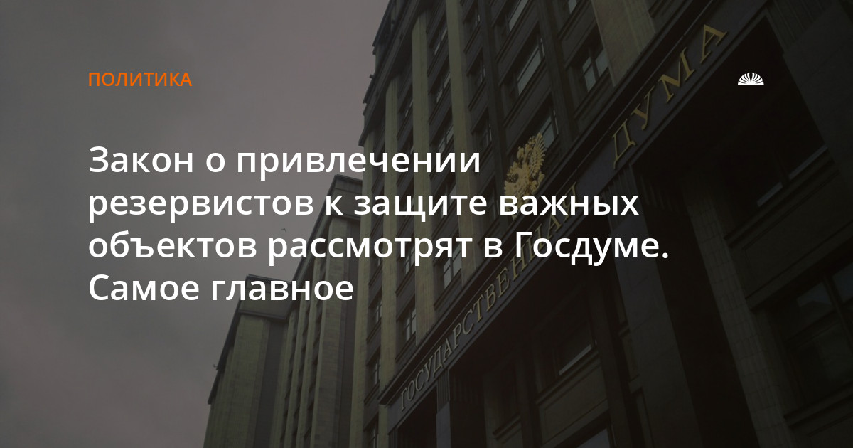 Предусматривается возможность направления резервистов по указу президента РФ на специальные сборы для охраны критически важных объектов. Это инфраструктурные объекты энергетики и транспорта. Порядок организации сборов будет определяться правительством РФ.