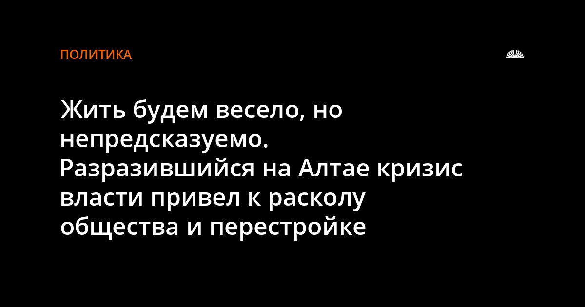 Причины кризиса, безусловно, должны стать предметом серьезного исследования политологов. Но уже сейчас можно констатировать несколько очевидных вещей: власть неправильно общалась с народом (не могла доходчиво объяснить, что ей удалось сделать для края); сосредоточилась на стабилизации социально-экономической обстановки и не добилась видимого прорыва вперед ни в одной из отраслей; не выпускала накапливающийся пар (не помешали бы такие шаги, как периодические отставки чиновников, провалившие те или иные участки работы и т.д.); вяло и несвоевременно реагировала на форс-мажорные ситуации (скандал вокруг «Барнаулстроя», землетрясение).