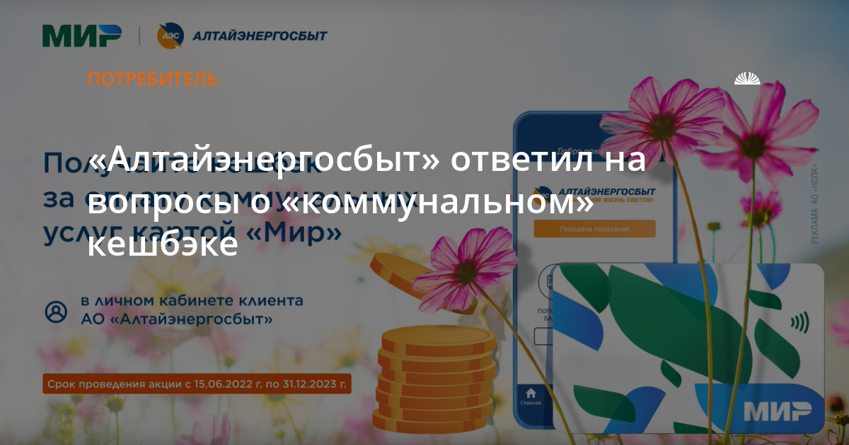 Участник акции получает кешбэк 1% от оплаченной суммы коммунального счёта на свою карту «Мир», зарегистрированную в Программе лояльности АО «НСПК».