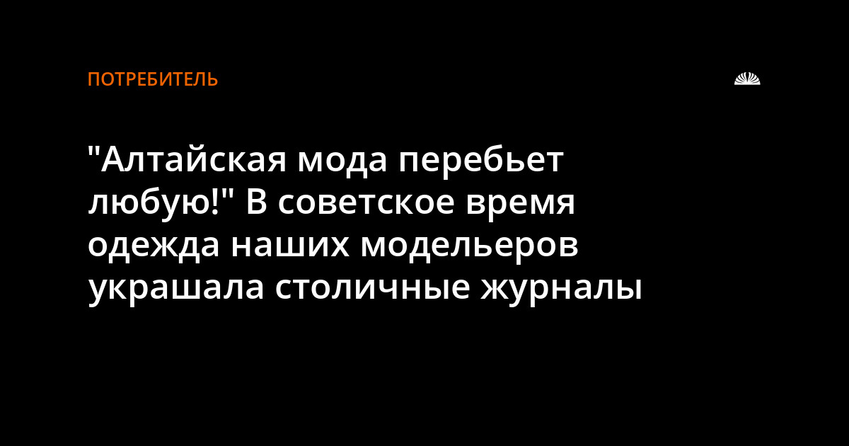 … "Наша алтайская мода перебьет любую моду", - любил повторять Петр Рыков, начальник управления бытового обслуживания в 1980-х годах. Вообще, по свидетельствам тех, кто "делал" советскую моду на Алтае, в нашем крае легко приживались даже ультрамодные идеи. А модели из наших коллекций запросто можно было встретить на страницах всесоюзных модных журналов, на выставках и подиумах в Москве, Венгрии, Китае.