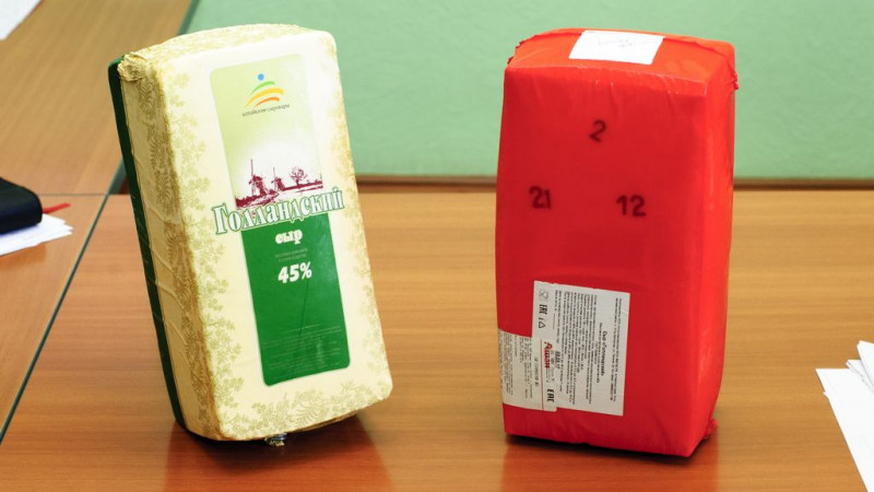 В начале марта к нам в редакцию обратились сотрудники "Усть-Калманского маслосырзавода". Во время похода в барнаульский "Ашан" они обнаружили там свой сыр "Голландский". Правда "своим" продукт можно считать чисто формально: по наименованию на черно-белой этикетке, которая, скорее всего, была распечатана на обычном принтере. Все остальное кардинально отличается. Нет у этого сыра ни зарегистрированного наименования, ни привычной упаковки в фирменном стиле. Что внутри, тоже большой вопрос.