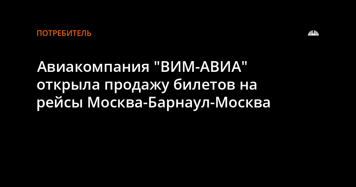 Авиакомпания "ВИМ-АВИА" открыла продажу билетов на рейсы Москва-Барнаул-Москва.