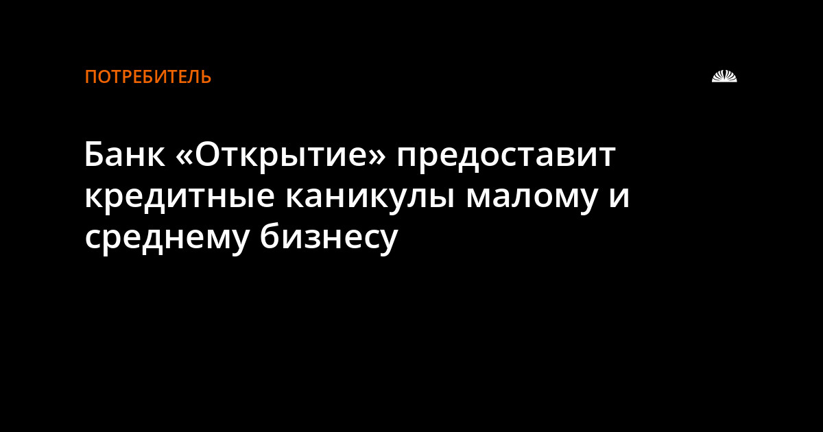 Предприниматели сейчас особенно уязвимы и как никогда нуждаются поддержке. Наши клиенты выбрали «Открытие» в хорошее время, а мы поддержим их бизнес в непростое. Именно в таких ситуациях проявляет себя по-настоящему надежный партнер. Кредитные каникулы позволят малому и среднему бизнесу пройти сложный период и продолжить свое дело.