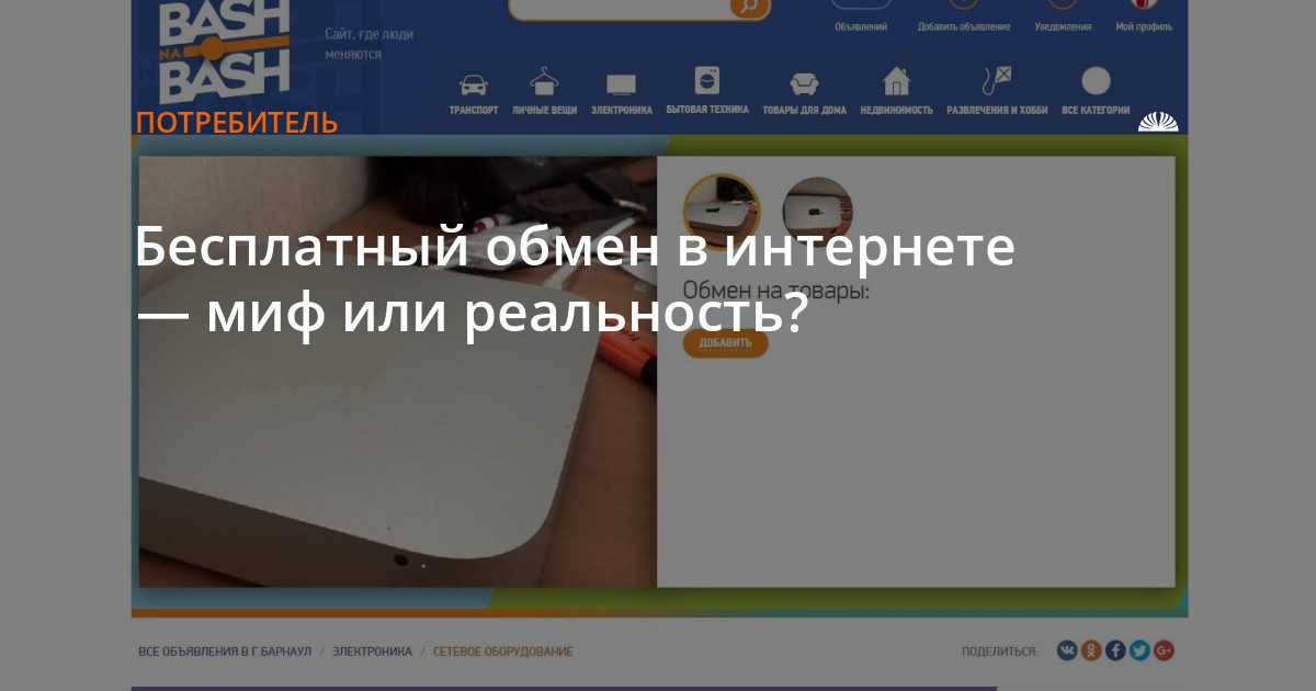 У меня уже давно пылится на столе системный блок Apple - с большим удовольствием обменял бы его на ноутбук. И вот совсем недавно на просторах интернета обнаружил сайт "Баш на Баш", на котором люди не продают или покупают, а меняются. Конечно же, в голову сразу закрались некоторые сомнения. Поэтому я решил опытным путем разобраться, что миф, а что реальность, и действительно ли так просто произвести обмен с помощью этого сайта.