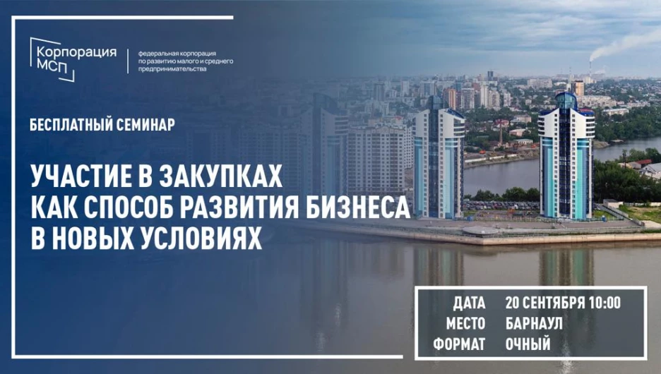 Организатор мероприятия АО «Федеральная корпорация по развитию малого и среднего предпринимательства» (Корпорация МСП) при поддержке Правительства Алтайского края.