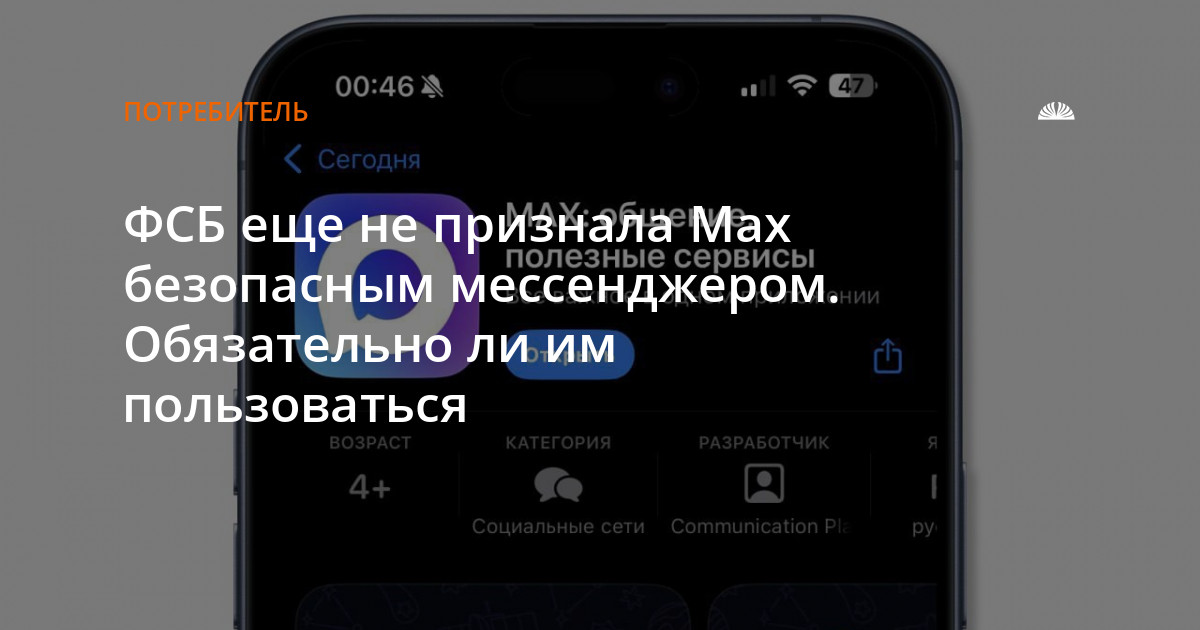 Более того, ФСБ еще не акцептовала Max как надежный мессенджер с точки зрения защиты персональных данных.
