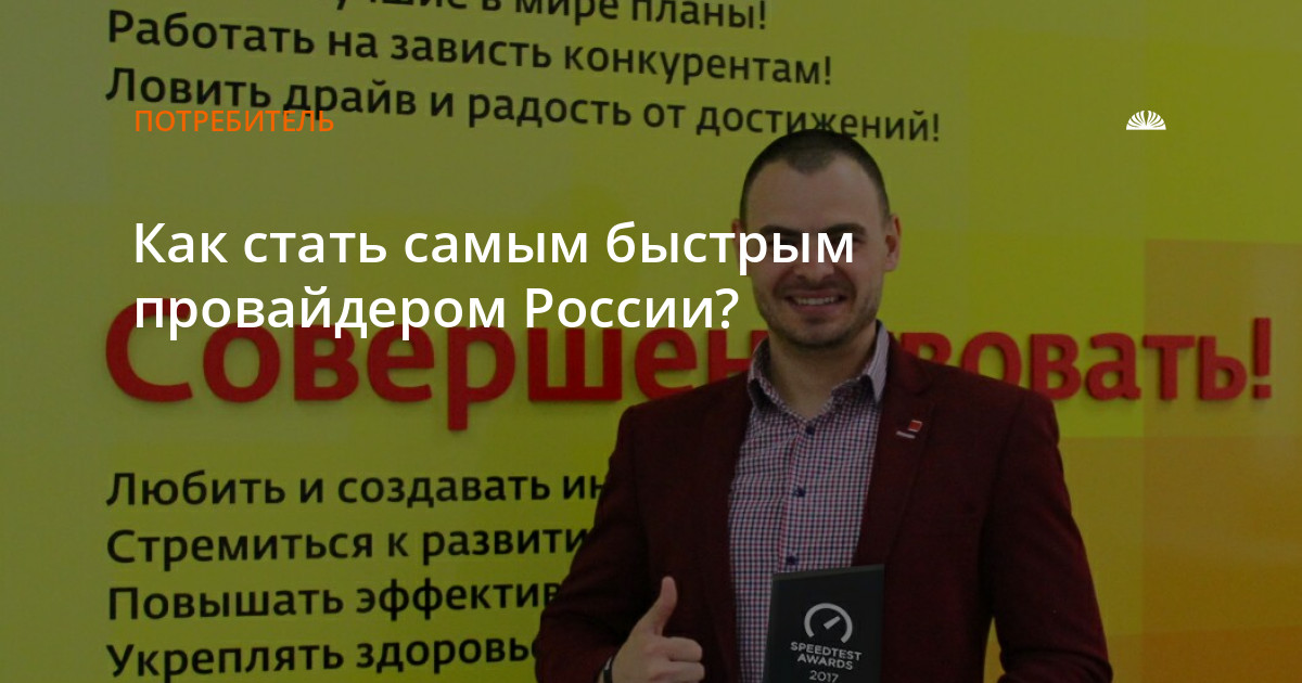 В 2017 году "Дом.ru" признан самым скоростным провайдером домашнего интернета в России по данным приложения Speedtest. Премия основана на данных миллионов тестов российских пользователей интернета. Результаты анализа подтверждают, что в 2017 году оператор показал наиболее высокие средние скорости и получил индекс скорости 43,73, обойдя по данному показателю другие компании. В наступившем 2018 году одним из основных приоритетов "Дом.ru" остается сохранение лидерства по скорости домашнего интернета.