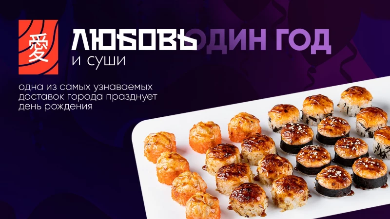 Популярной доставке еды «Любовь и суши» исполнился год — компания открылась 10 марта 2023 года.