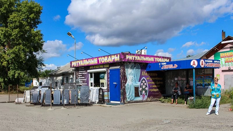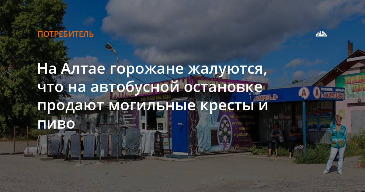 Как сообщает "Бийский рабочий", площадка остановки, где пассажиры ждут транспорт, закреплена за владельцами расположенных рядом ларьков. В свое время они арендовали землю под торговый павильон с остановкой. Территория у остановки "Кирпичный завод" абсолютно чистая, за этим хозяин "похоронного" киоска следит строго, ведь эта площадка стала мини-рынком памятников и могильных крестов.