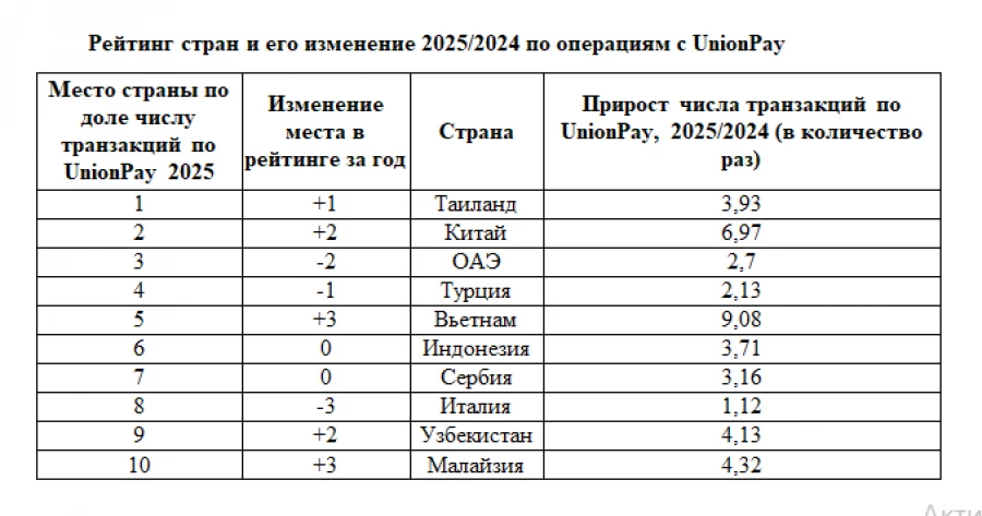 Сейчас топ-10 стран по числу транзакций по картам UnionPay наполовину формируют государства Восточной и Юго-Восточной Азии: Таиланд, Китай, Вьетнам, Индонезия и Малайзия, а страны Запада утратили позиции. Особенное внимание обращает на себя Китай. На него приходится 20% заграничных транзакций в 2025 году, а если проанализировать август, то видим увеличение числа трат в 4,6 раза год к году. С учётом прогнозируемого роста турпотока на 30-40% после введения безвизового режима мы видим возможности для многократного наращивания числа операций, — заключила Людмила Корсакова.