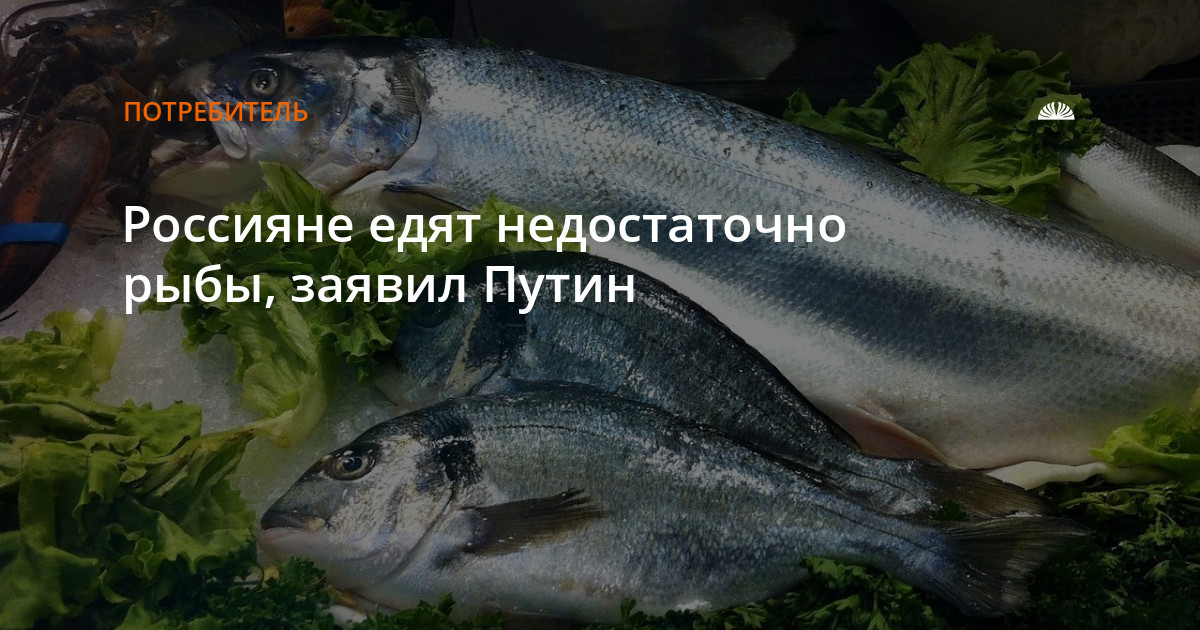 В сентябре российский лидер отмечал, что потребление должно составлять 28 кг на душу населения в год, а в России «где-то 23- 23,5 кг». Таким образом россияне не дотягивают до норм Минздрава по потреблению морепродуктов и рыбы.