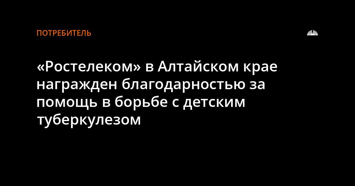 В марте «Ростелеком», продолжая поддержку программы «Нет –детскому туберкулезу!», оказал благотворительную помощь детскому фонду. Перечисленные средства будут направлены на благоустройство больничных палат детской туберкулезной больницы Рубцовска.