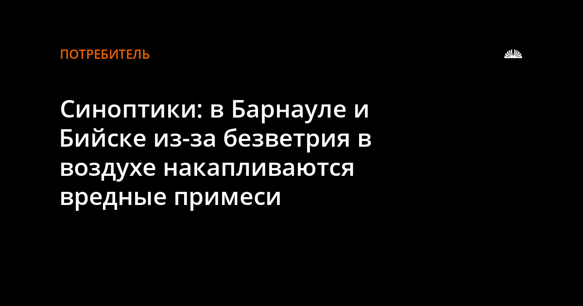 По данным Алтайского центра по гидрометеорологии и мониторингу окружающей среды в Барнауле объявлено штормпредупреждение о неблагоприятных метеоусловиях, способствующих накоплению вредных примесей. Такое же предупреждение касается и Бийска.