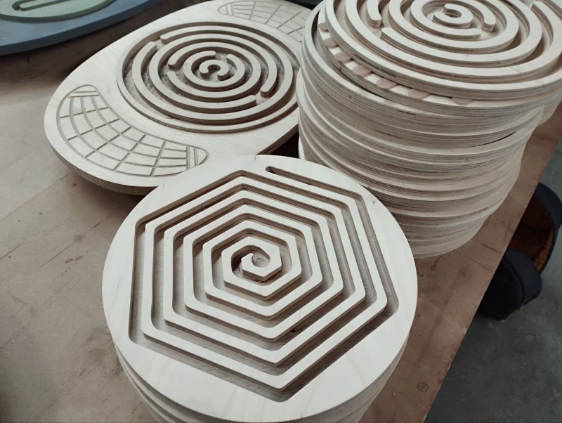 Его конструкция с платформой на подвижном основании требует от пользователя постоянного поддержания равновесия. На доске вырезаны маленькие лабиринты, которые создают игровой момент: нужно раскачиваться из стороны в сторону, чтобы закатить шарик в центр.