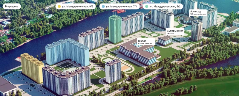 При покупке квартиры в квартале у реки «Аквамарин» площадью от 50 м² родителю детей, не достигших 18 лет, предоставляется возврат средств в размере от 200 тысяч ₽ за каждого ребенка, не более 600 тысяч ₽ за одну квартиру. Программа действует до 1 сентября 2025 г.