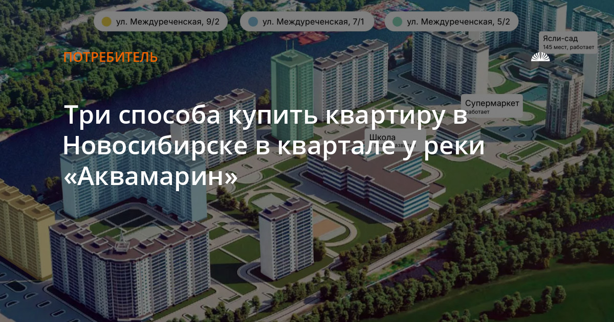 Каждый месяц лета мы предлагаем пул квартир со скидками. Квартиры июля уже анонсированы на сайте проаквамарин.рф и в пабликах проекта https://t.me/proaquamarine и https://vk.com/akvamarin_nsk. Скидки на них от 470 до 735 тысяч ₽ действуют до конца месяца. Следующий пул квартир со скидками будет объявлен в начале августа. Это предложение будет действительно до 31.08.2025 г.
