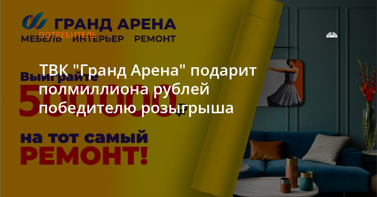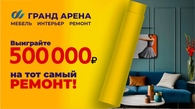 ТВК "Гранд Арена" запустила розыгрыш, главный приз которого – 500 тысяч рублей на ремонт. Победитель получит возможность совершить покупки в "Гранд Арене" на эту сумму. Кроме главного приза, ТВК разыгрывает еще множество подарков от партнеров на сумму более 150 тысяч рублей.