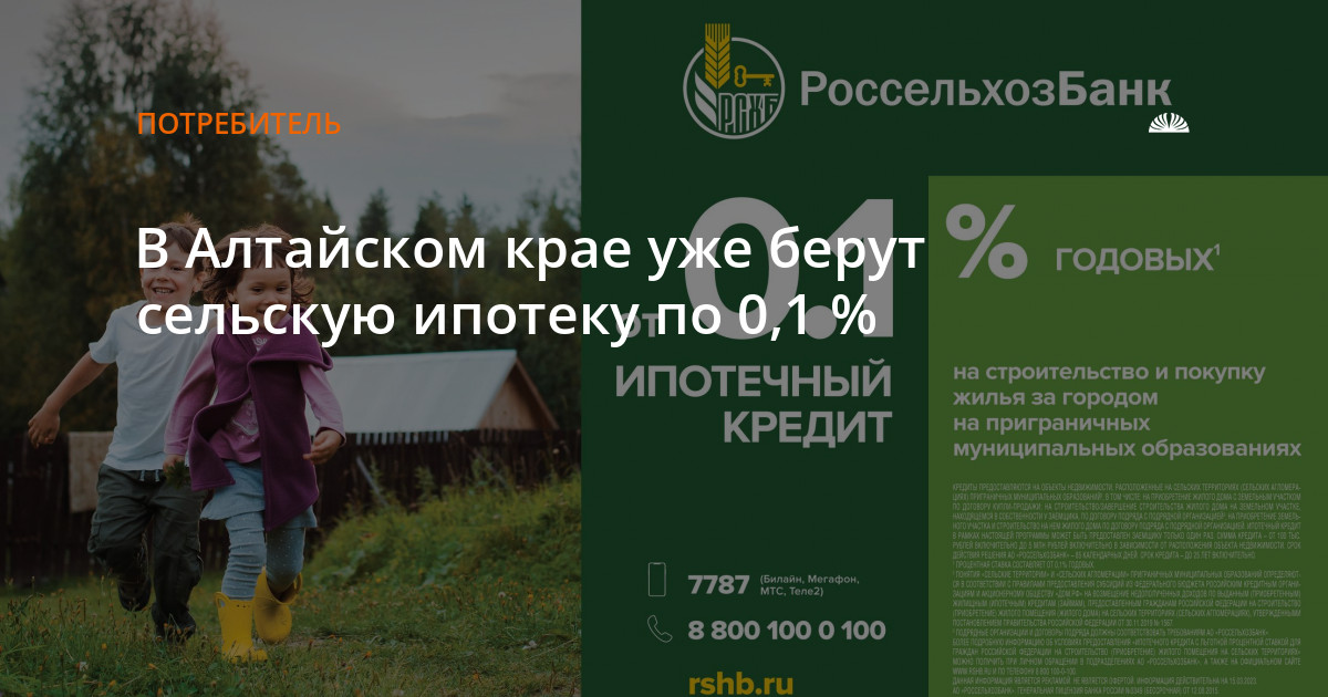 Всего с начала действия программы в Алтайском крае и Республике Алтай Россельхозбанк выдал кредитов по сельской ипотеке на общую сумму свыше 2,8 млрд рублей. Свои жилищные условия улучшили более 1600 семей. В настоящий момент есть возможность для жителей 7 муниципальных районов Алтайского края сделать это на самых выгодных условиях. Для жителей Алтайского края и Республики Алтай остается возможность сельской ипотеки от 3% при условии личного страхования, — прокомментировал директор Алтайского регионального филиала Россельхозбанка Николай Бойко.
