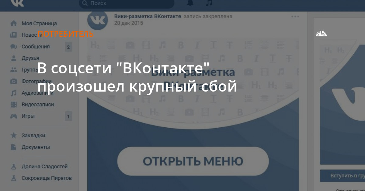 До этого последний крупный сбой во "ВКонтакте" произошел в мае 2016 года.