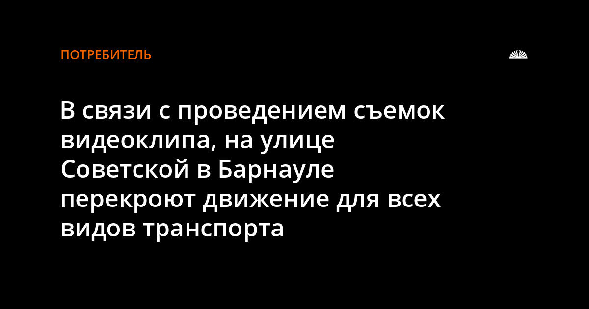 В связи с проведением съемок видеоклипа, на улице Советской в Барнауле перекроют движение для всех видов транспорта