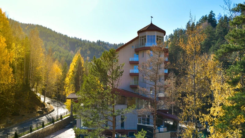 Пятизвездочный отель составляет единый гостиничный комплекс с отелем 3*, который работает в Белокурихе с 2018 года. У них общая живописная территория, разделенная горной рекой Белокурихой с несколькими мостами, на которых традиционно любят фотографироваться гости.