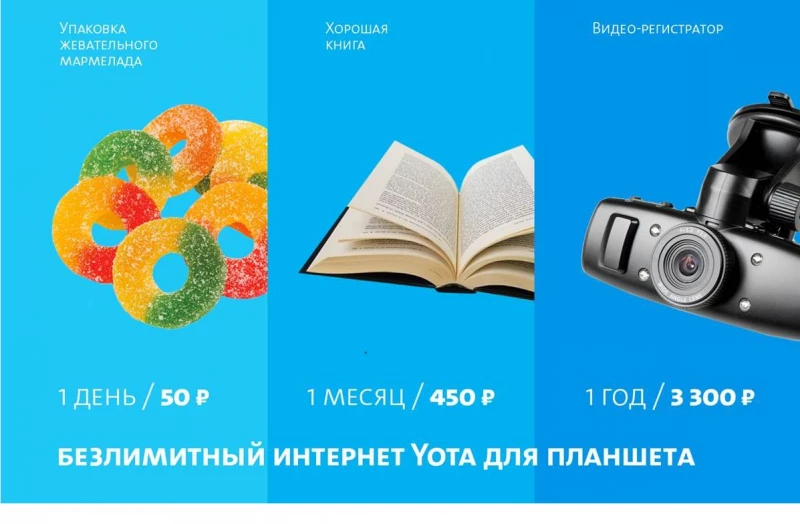 Тогда скорость выхода в интернет клиент выбирал самостоятельно. От этого зависела стоимость пакета услуг для планшета. На достигнутом Yota не остановилась и вновь качественно отличилась от конкурентов. С сентября 2016 года клиенты Yota могут пользоваться планшетным продуктом на максимальной скорости, выбирая только период подключения: день, месяц или год. Никаких ограничений по трафику, географии и скорости.