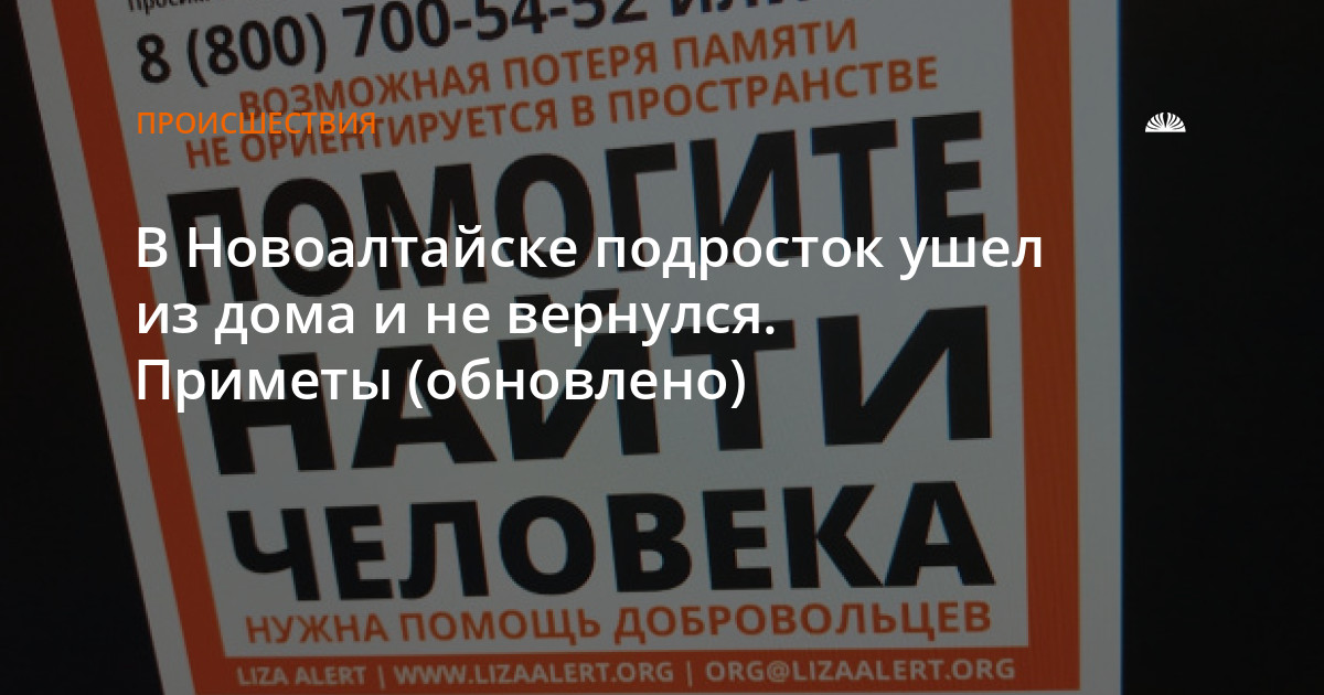 17-летний подросток вышел из дома в Новоалтайске 4 августа.
