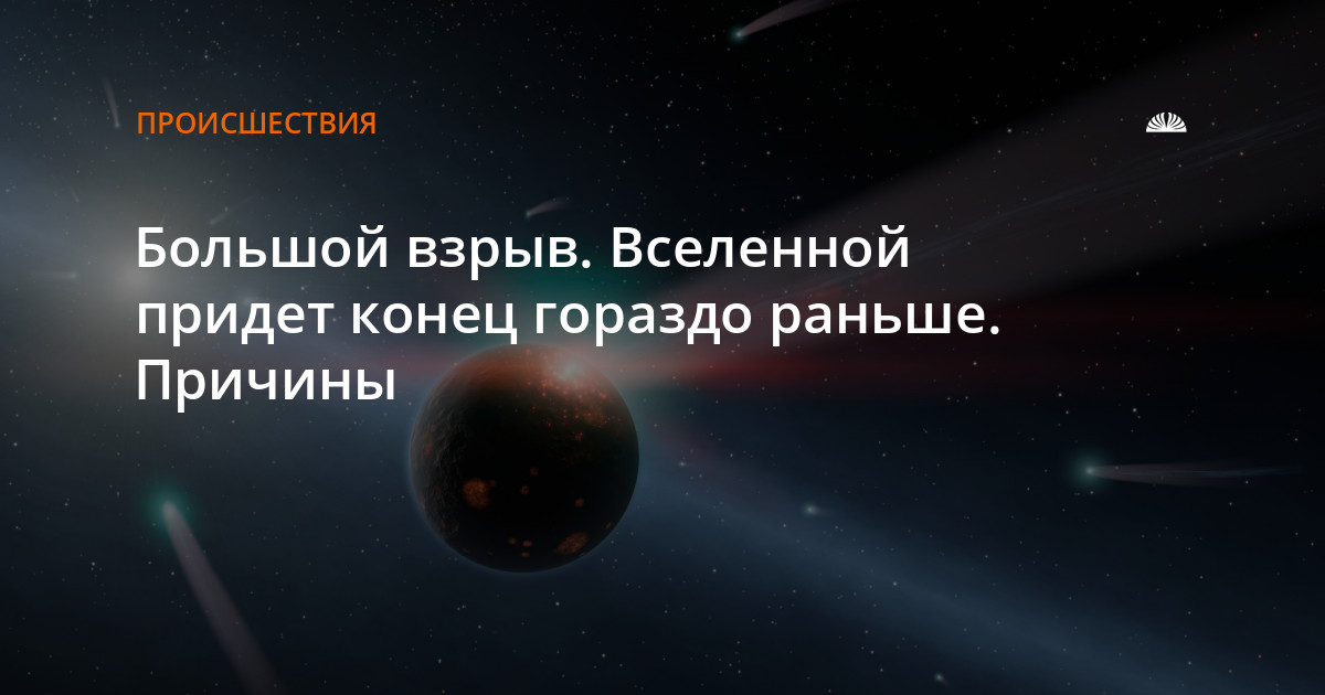 Еще не так давно ученые считали, что коллапс случится спустя триллионы лет в виде «тепловой смерти», то есть бесконечного расширения с угасанием энергии. Новое исследование меняет эту теорию — конец для Вселенной начнется уже через 10 млрд лет, а полное исчезновение наступит через 33 млрд лет после Большого взрыва.