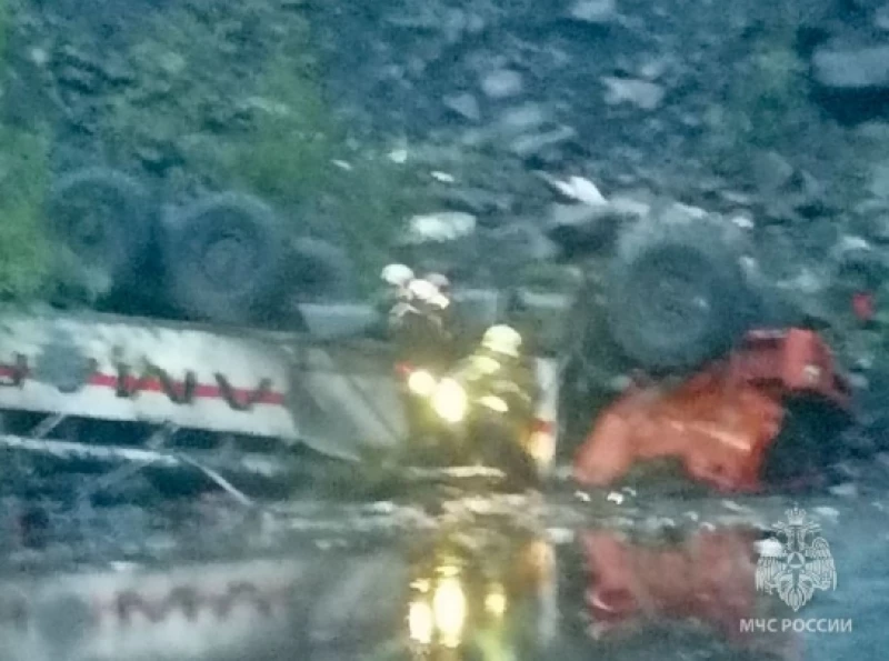 Автобус упал с обрыва на технологической автодороге «ГОК Денисовский».