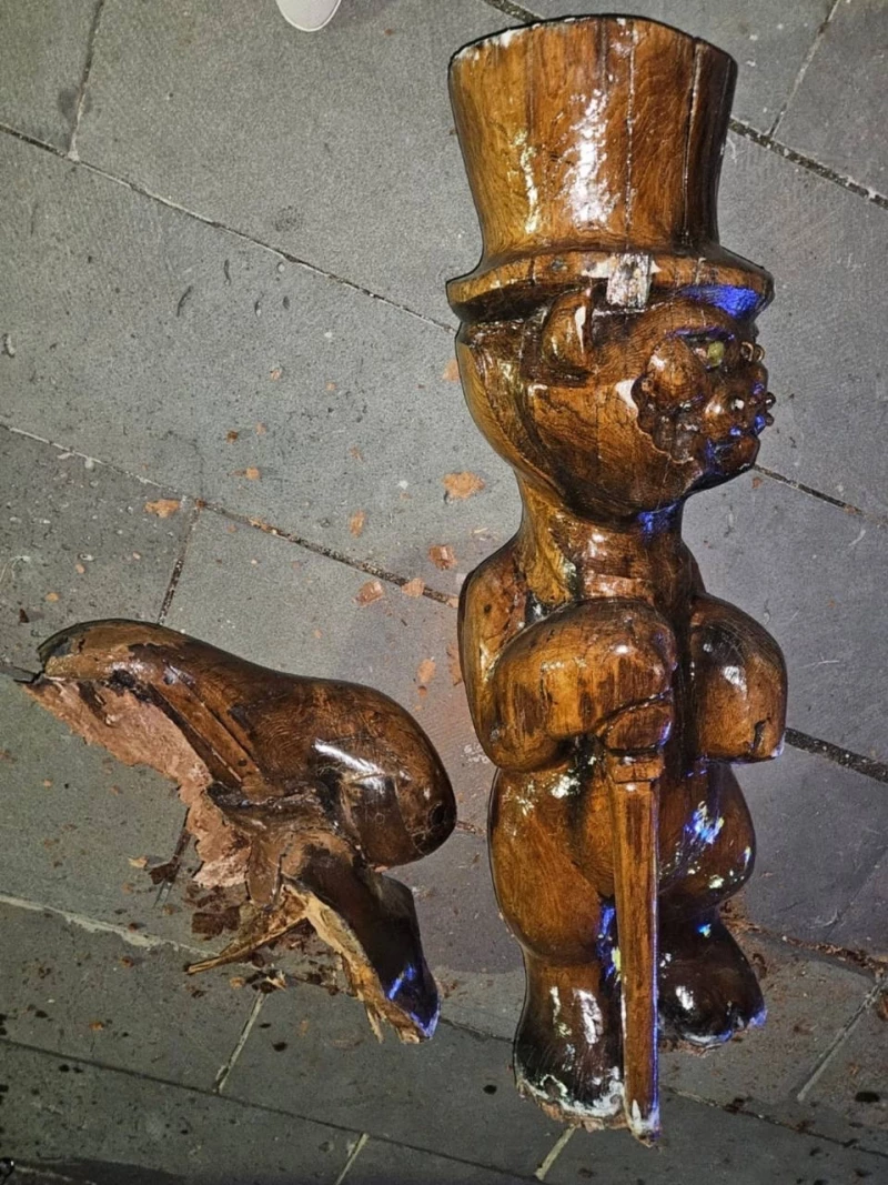 По словам очевидцев, это случилось в тот момент, когда родители фотографировали девочку у скульптуры. Внутри она оказалась гнилой, что, по всей видимости, и привело к ее обрушению.